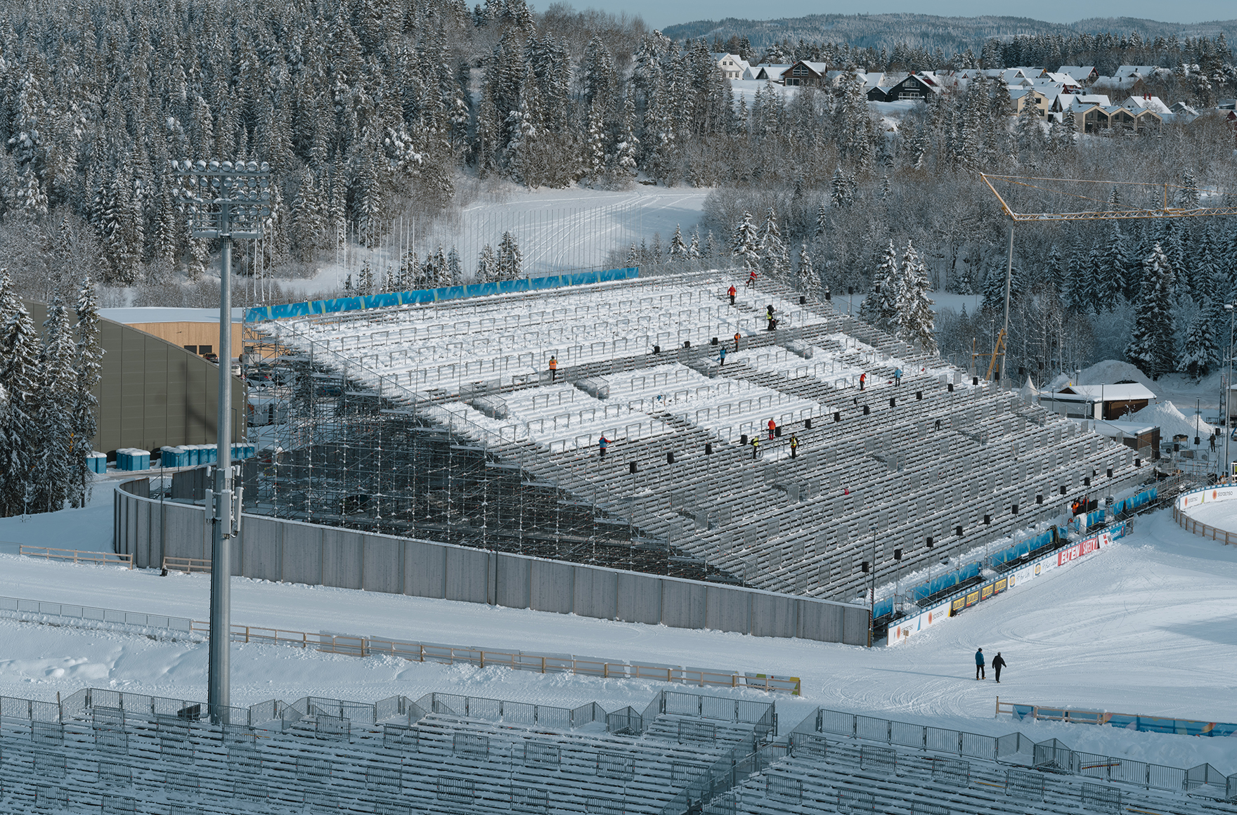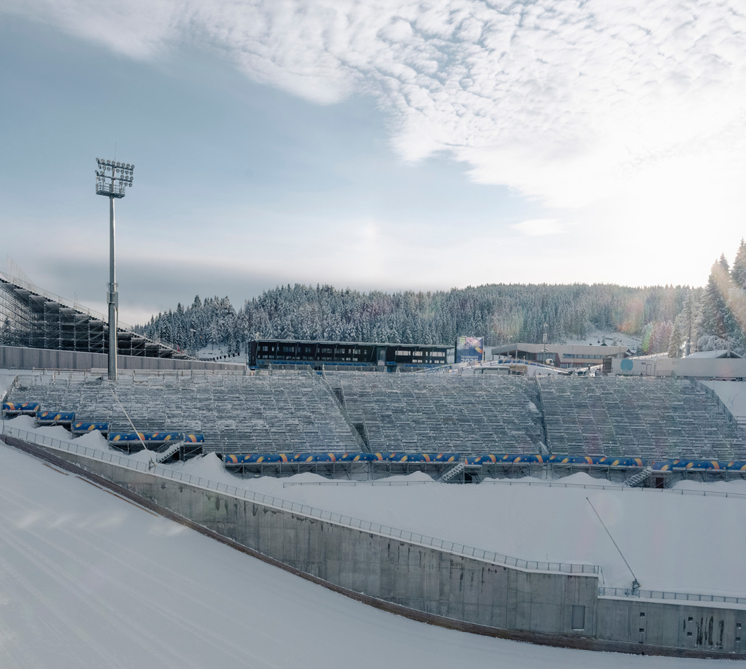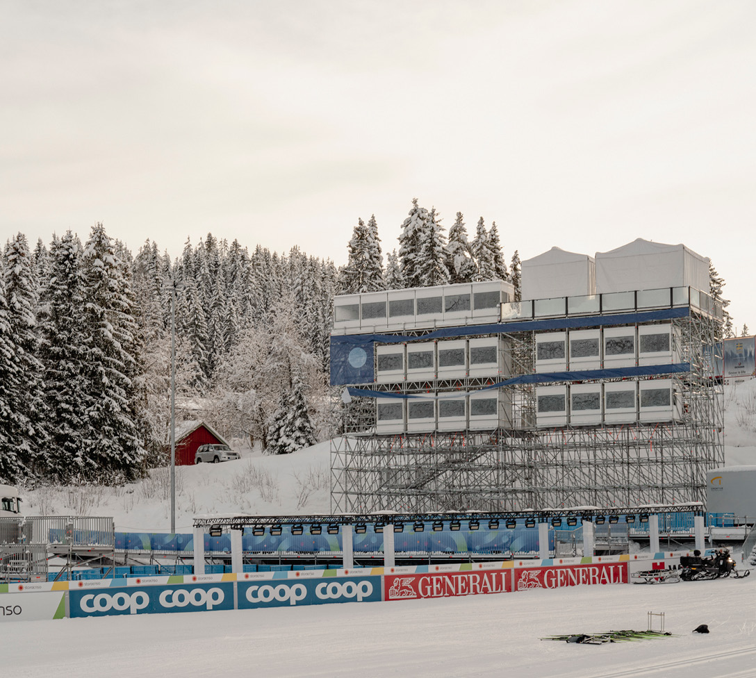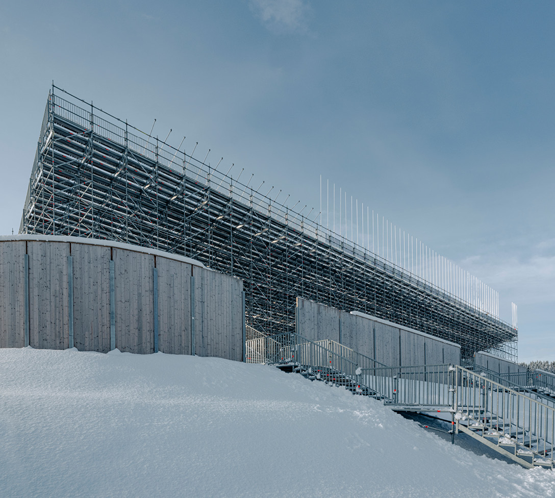 Sportlicher Wettkampf und Zuschauerfest zugleich: Die Nordische Ski-WM im norwegischen Trondheim begeisterte vor Ort die laut Zeitungsberichten über 500.000 Fans. Eine erfolgreiche “Kombination” waren dabei die Event-Systeme und das AllroundGerüst. Aus 50 LKW-Ladungen mit Gerüstmaterial wurden von skandinavischen Event-Gerüstbauern 50 temporäre Konstruktionen errichtet – von Treppen über Gerüstzelte bis hin zur beeindruckenden Haupttribüne mit 90 m Breite und 18 m Höhe. Diese ließ sich mit einer Unterkonstruktion aus AllroundGerüst exakt an die Gegebenheiten vor Ort anpassen – und bot den 12.000 Zuschauerinnen und Zuschauern optimale Sichtverhältnisse.