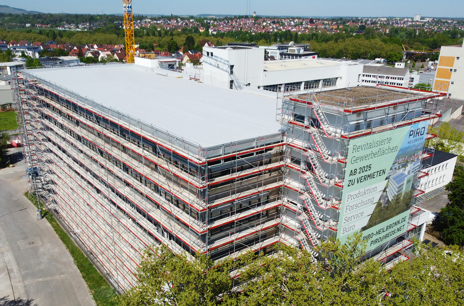 Für Umbau und Kernsanierung eines Fabrikgebäudes war ein rund 5.000 Quadratmeter großes Arbeitsgerüst der Lastklasse 3 mit verschiedenen Zusatzaufgabenstellungen nötig. Mit dem modularen Fassadengerüst AGS konnte das Gerüstbauunternehmen H + P das Fassadengerüst optimal an die Gebäudegeometrie anpassen und alle Anforderungen wirtschaftlich realisieren. Sicherheit inklusive.