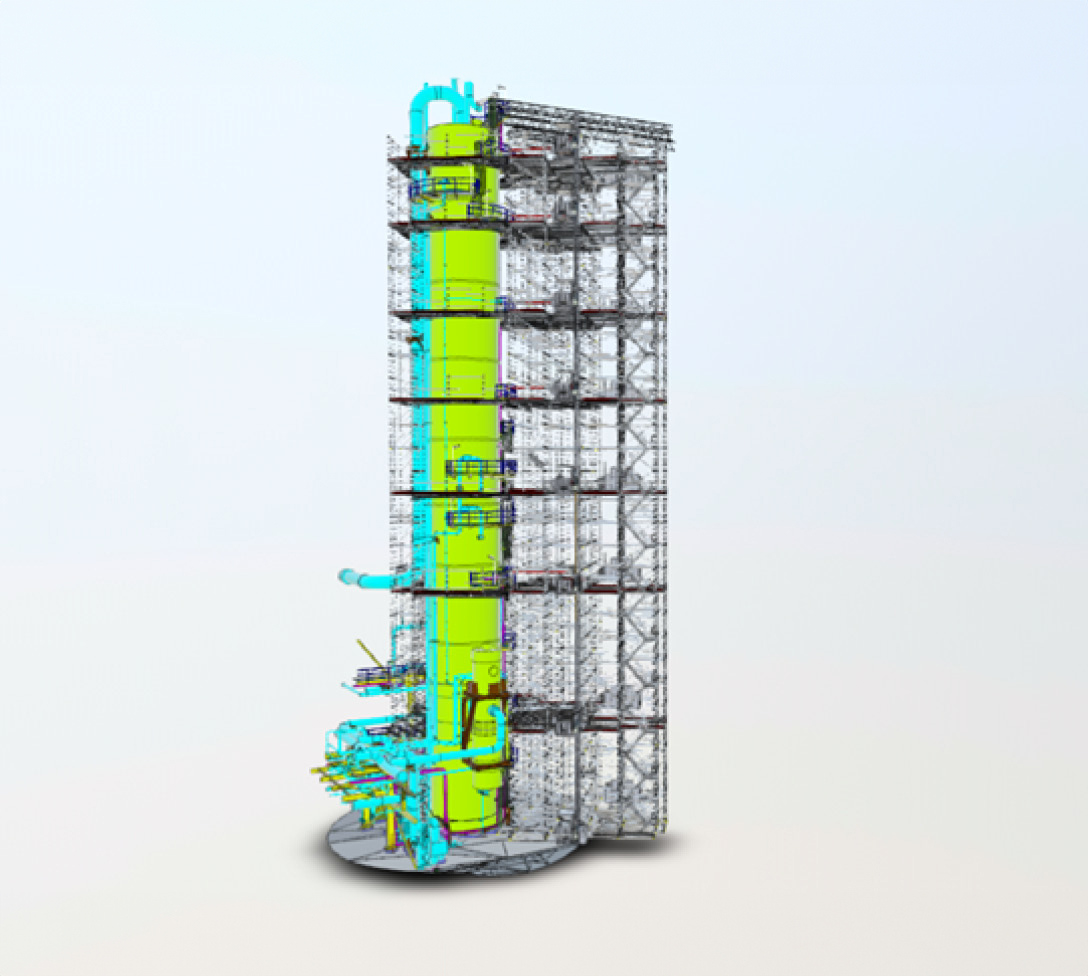 - Flexible Geometrieanpassungen mit dem AllroundGerüst, um Kollisionen mit Rohrleitungen zu vermeiden und das Einkranen der bis zu 6 m langen Trennböden zu ermöglichen