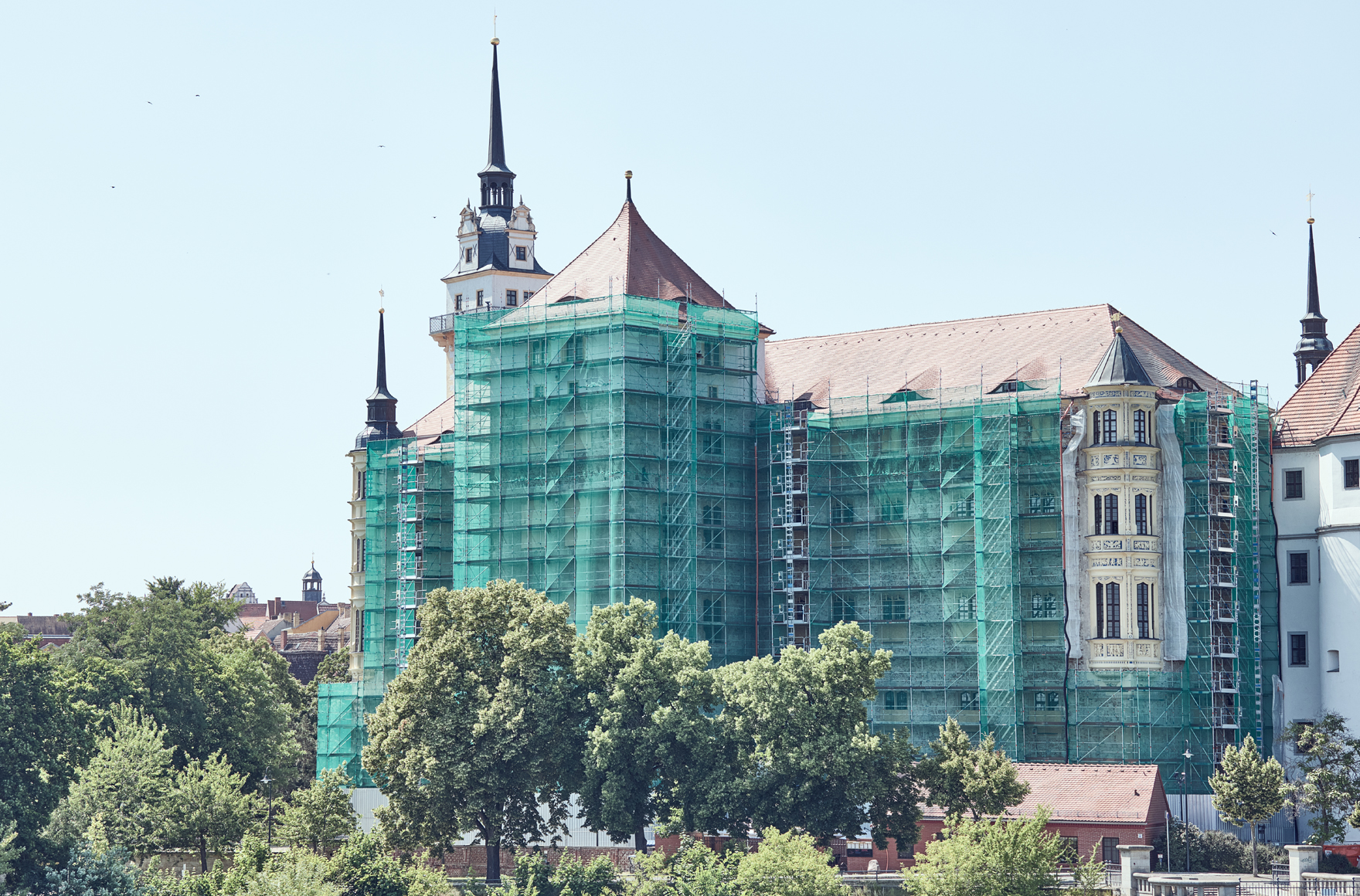 Es gilt als einer der wichtigsten Orte für die Reformation: Die Rede ist von Schloss Hartenfels im sächsischen Torgau. Dieses wird aktuell an der Fassade saniert, um das historisch bedeutende Meisterwerk der Frührenaissance für die Nachwelt zu erhalten. Möglich macht dies ein 3.800 m² großes Arbeitsgerüst der Lastklasse 4 von den regional ansässigen Gerüstspezialisten Beier. Schnell errichtet und optimal an die Gegebenheiten angepasst mit dem modularen Fassadengerüst AGS. Mit Sicherheit.