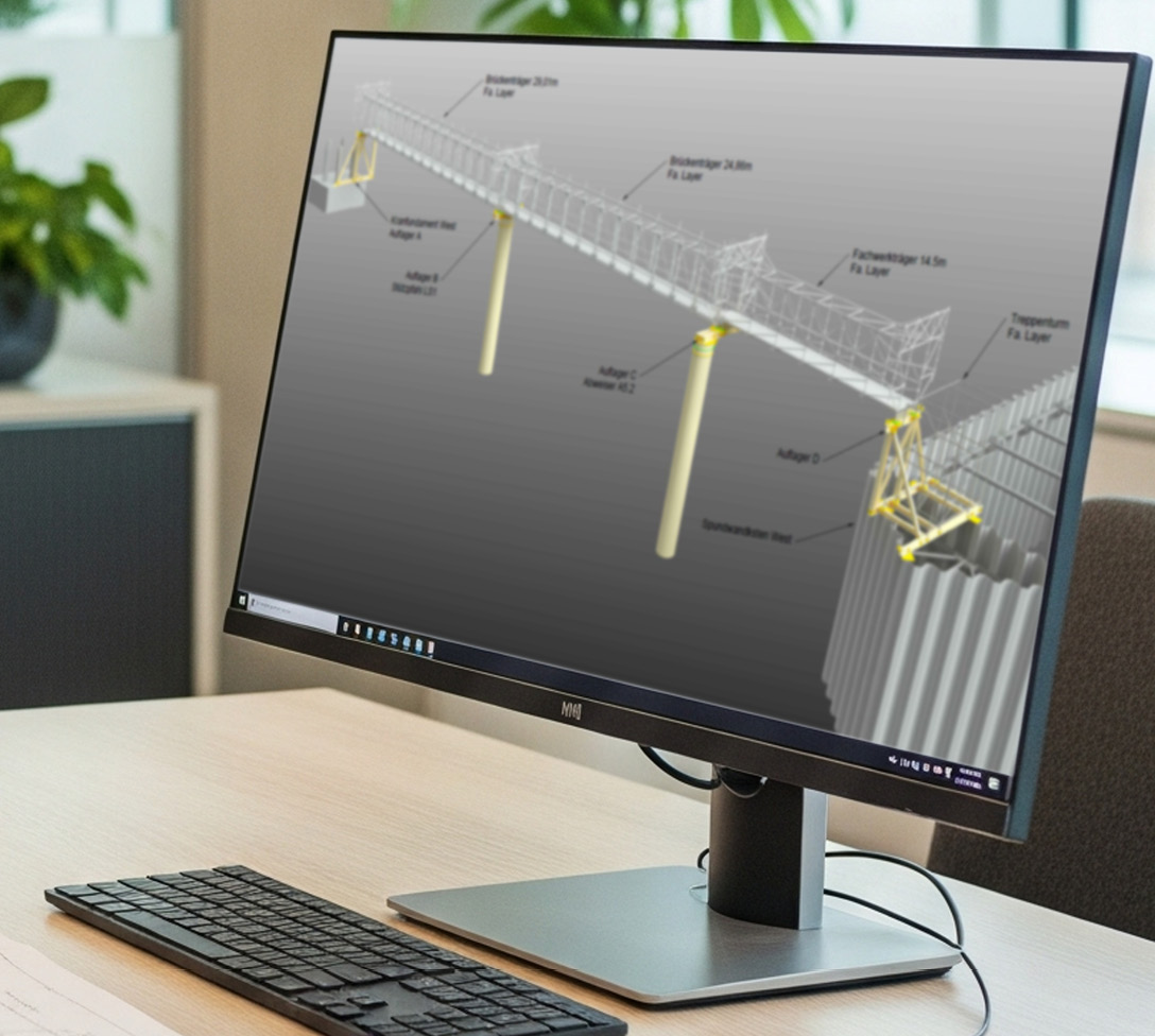 - Im Rahmen der Vorplanung in 3D war eine enge Abstimmung zwischen dem Bauunternehmen, den Layher Anwendungsingenieuren und dem Ingenieurbüro möglich. Die 3D-Gerüstplanung ermöglichte im Anschluss das Erstellen verlässlicher Materiallisten auf Knopfdruck und erleichterte die Montage – der digitale Gerüstzwilling ließ sich auf der Baustelle detailliert von allen Seiten betrachten