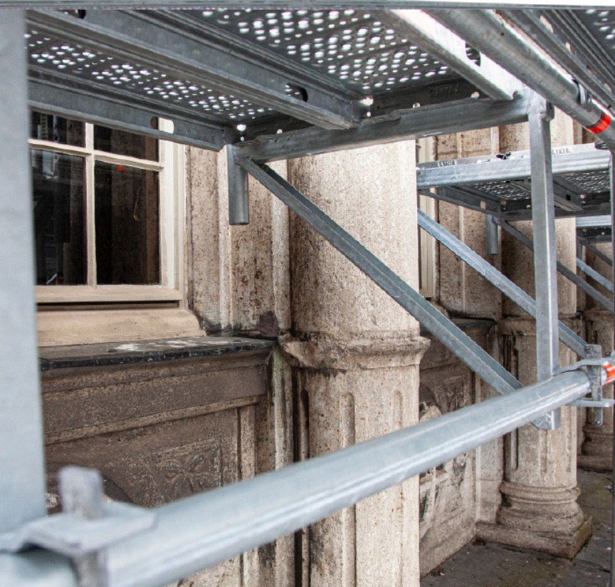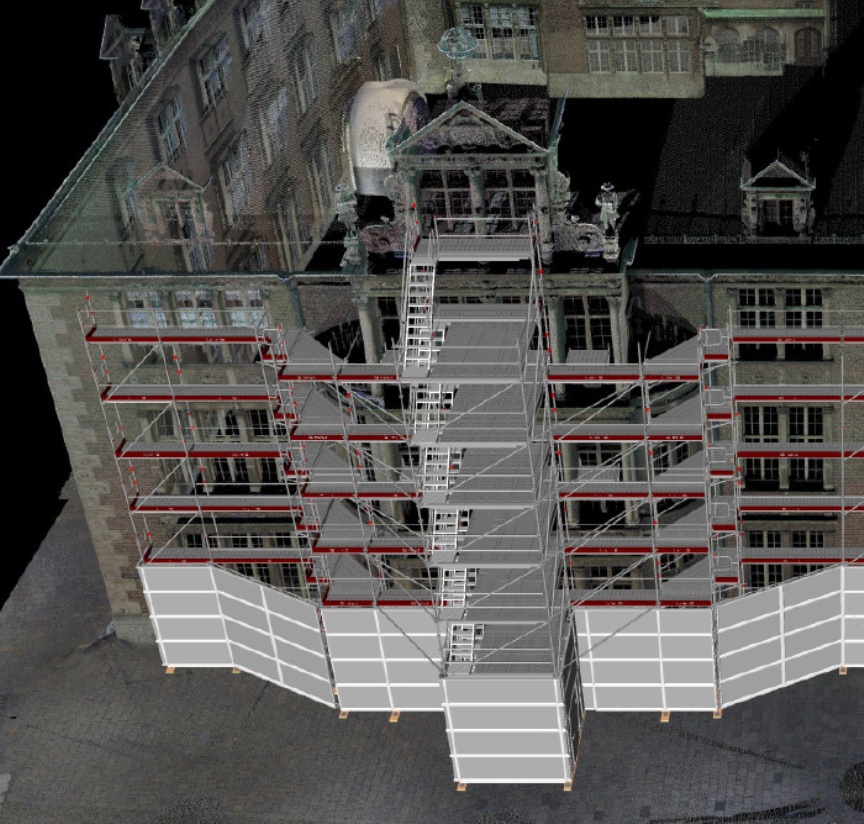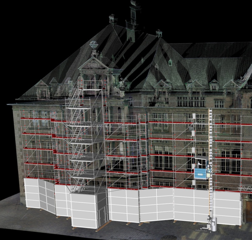 possible for our own customers”, Tharia explains. “The 3D images from the scans are so detailed that they’re not only useful for creating very precise plans of our scaffolding. City officials are contemplating using our scans too – recycling them, as it were – to document the fabric of their buildings”, adds Lars Ukena, the site supervisor responsible for the project at Wilhelm Bädecker Gerüstbau GmbH. Digital planning as part of LayPLAN SUITE moreover makes material logistics more efficient, which is a highly relevant factor when it comes to city-centre construction sites.