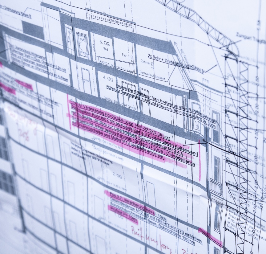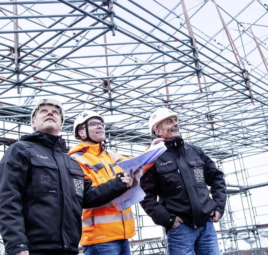 “A project like this relies on teamwork – and I don’t just mean the people in the construction crew or in the office. The cooperation with our customer, other trades, the structural engineering consultants and – last but not least – Layher is equally fundamental for the success of our work”, Christopher Busch comments. The close collaboration with the structural specialists and Layher’s regional contact played a particularly important role in this project, because the requirements have changed frequently, meaning that new calculations and a lot of new material have been needed for the construction site at short notice. Busch could not be more satisfied: “This clearly shows the advantages of a good network in which everyone pulls together to realise a project professionally. We’ve just had an employee trained by Layher directly to use the LayPLAN CAD software, and we’ll be able to plan and implement our projects even more efficiently in future”, Stefan Grasnick reports. Seeing all the details of a scaffolding design on the computer upfront opens up immense possibilities. Not only can the required materials, logistics and assembly steps be planned very precisely; architectural or structural challenges can also be identified at an early stage and solutions worked out on the PC. “Scaffolding is increasingly digital – and we’re at the forefront, constantly leveraging the benefits”, the two professionals conclude, not without pride.