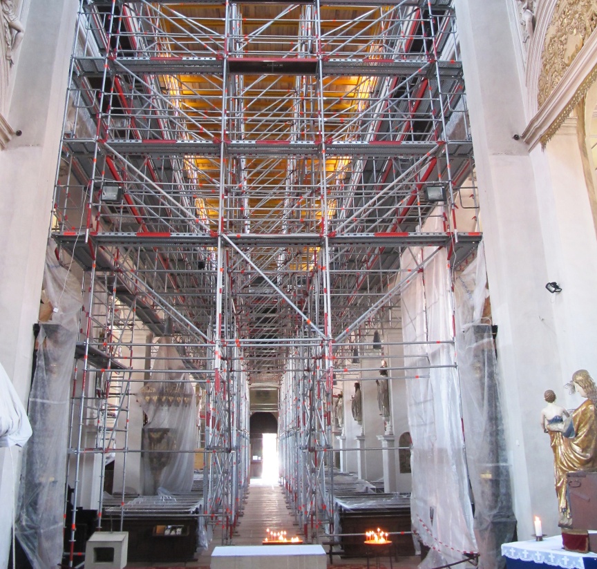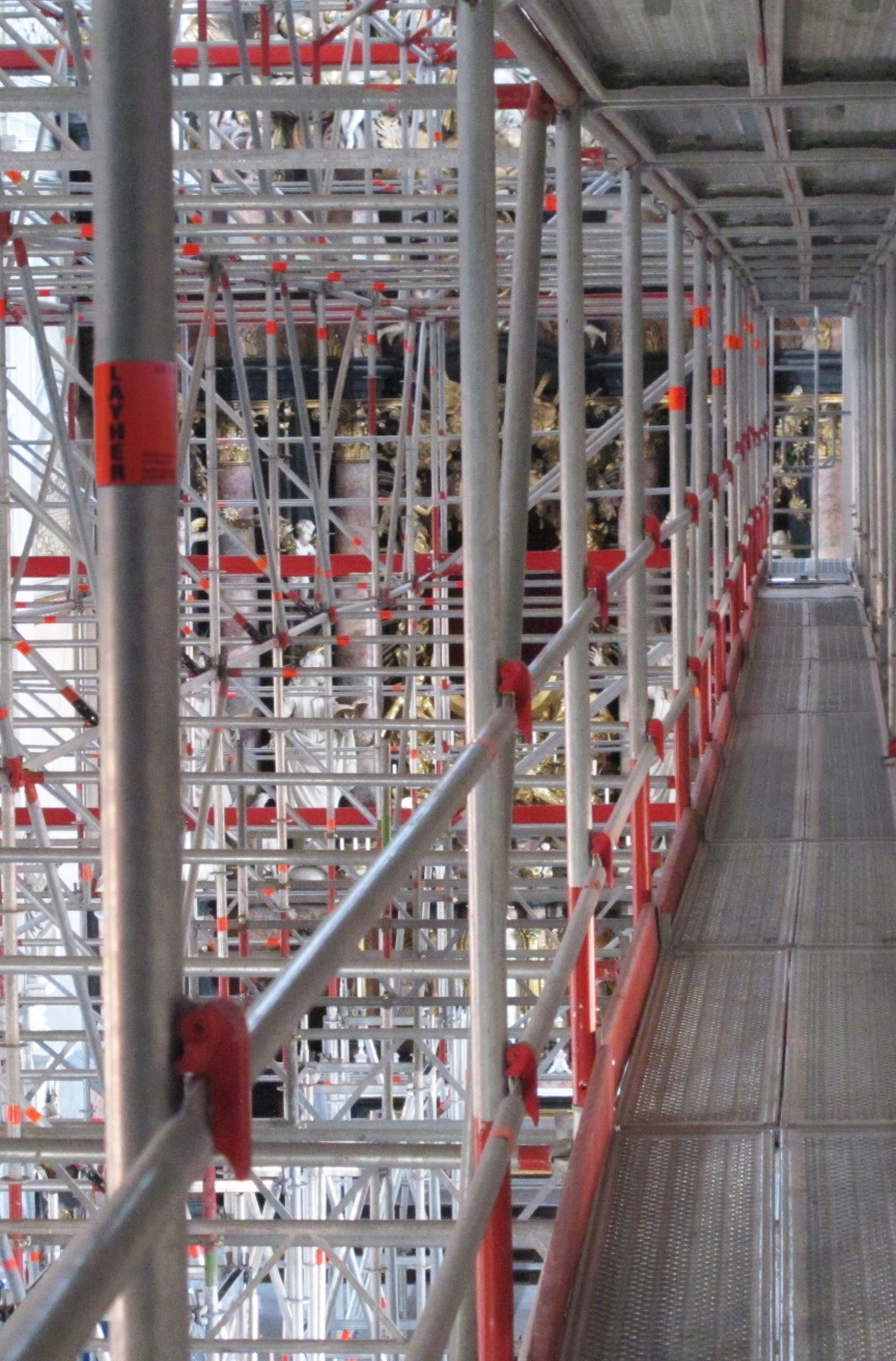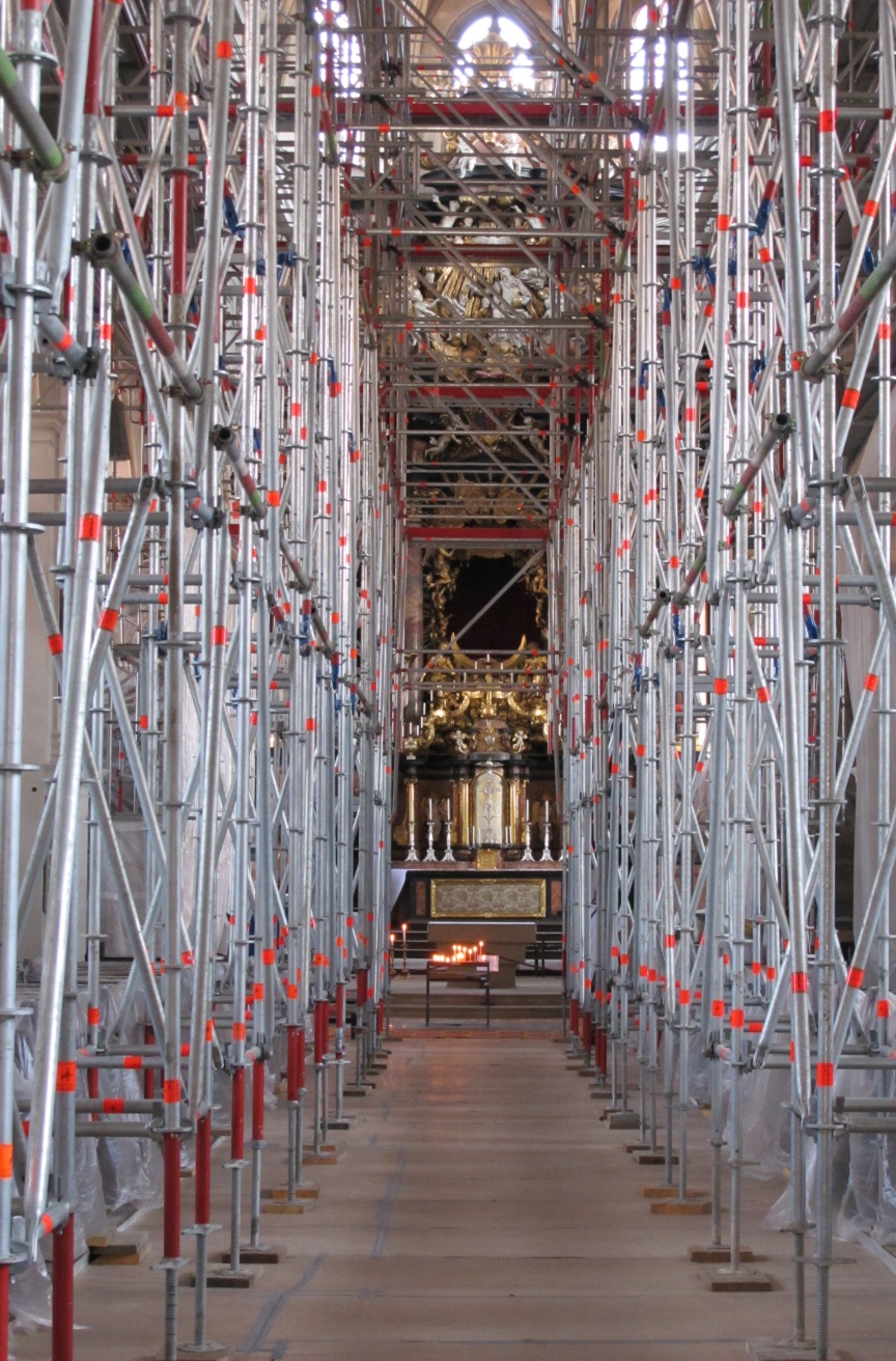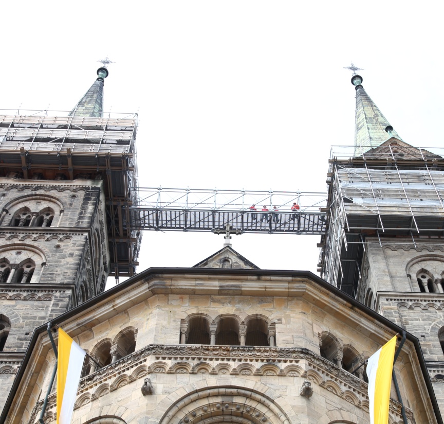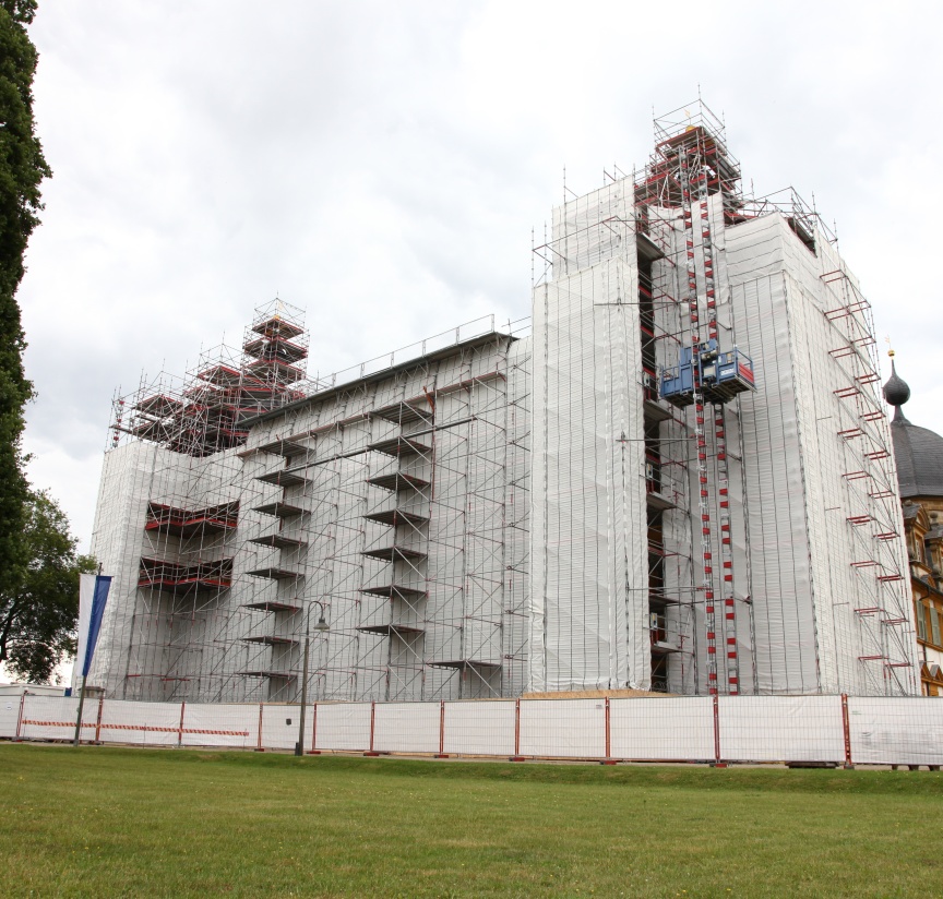 “We specialise in scaffolding solutions for listed building monument protection, as well as historical building and church renovations – to some extent because Bamberg has such exceptional historic architecture,” explained Udo and Thorsten Karl, Managing Directors of the company that is headquartered just outside Bamberg’s city gates. Karl Gerüstbau uses Layher Allround Scaffolding material because of its versatility, and is often the first company to try out the scaffolding manufacturer’s innovations. When new products are being used for the first time the Layher engineers and product managers are always on hand to provide advice and support in the planning and build phases. “We appreciate the personal service and the fast decision-making processes at Layher. In fact, we believe they are the reasons why our partnership is so successful,” emphasised Udo Karl in our interview. The Bambergers also pointed out the importance of the versatile Layher accessories that are integrated into the systems and have standard dimensions to maximise flexibility of use in the Allround Scaffolding structures. “The Layher Allround Scaffolding offers us endless possibilities. All the innovative products and accessories are practice-tested and noticeably improve the efficiency and reliability of our work. The accessories are also all dimensionally and statically perfect for the material we already have, including earlier generation products, which saves time during assembly and money,” added the scaffolding experts.
