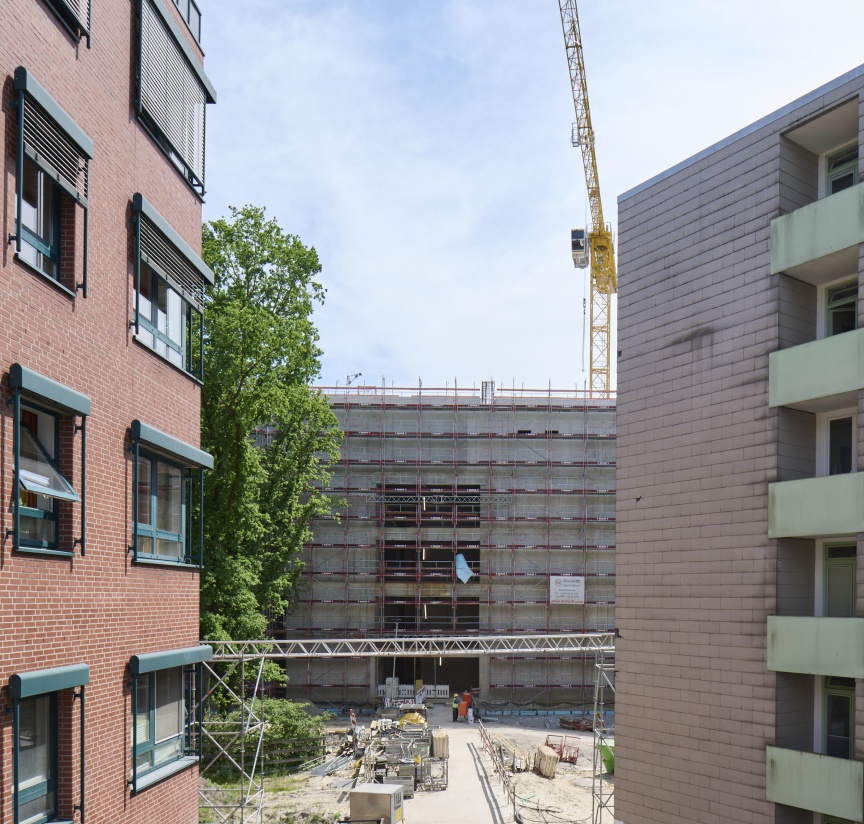 In order to make Oldenburg Clinic hospital fit for the future, two large new buildings were erected on the site. A five-storey extension and a four-storey perinatal centre with a total of 370 beds complement the existing facilities. Nietiedt Gerüstbau GmbH was already involved in construction of the shell as a scaffolding partner, and, with a crew of four to six erectors, erected a good approx. 30,000 m2 of Layher SpeedyScaf with I-Guardrails to facilitate installation of the external facade while construction was in progress. “Our scaffolding erectors are fully trained in assembly of the I-Guardrail, so even scaffolding as large as this is no problem – quite the opposite”, explains Andreas Janssen, Site Supervisor responsible for the project. “Thanks to the advancing guardrail, our erectors no longer have to attach their PPE to the scaffolding. This gives them greater freedom of movement without jeopardising their safety. As such, the system allows us to combine efficiency and safety in the best possible way!”