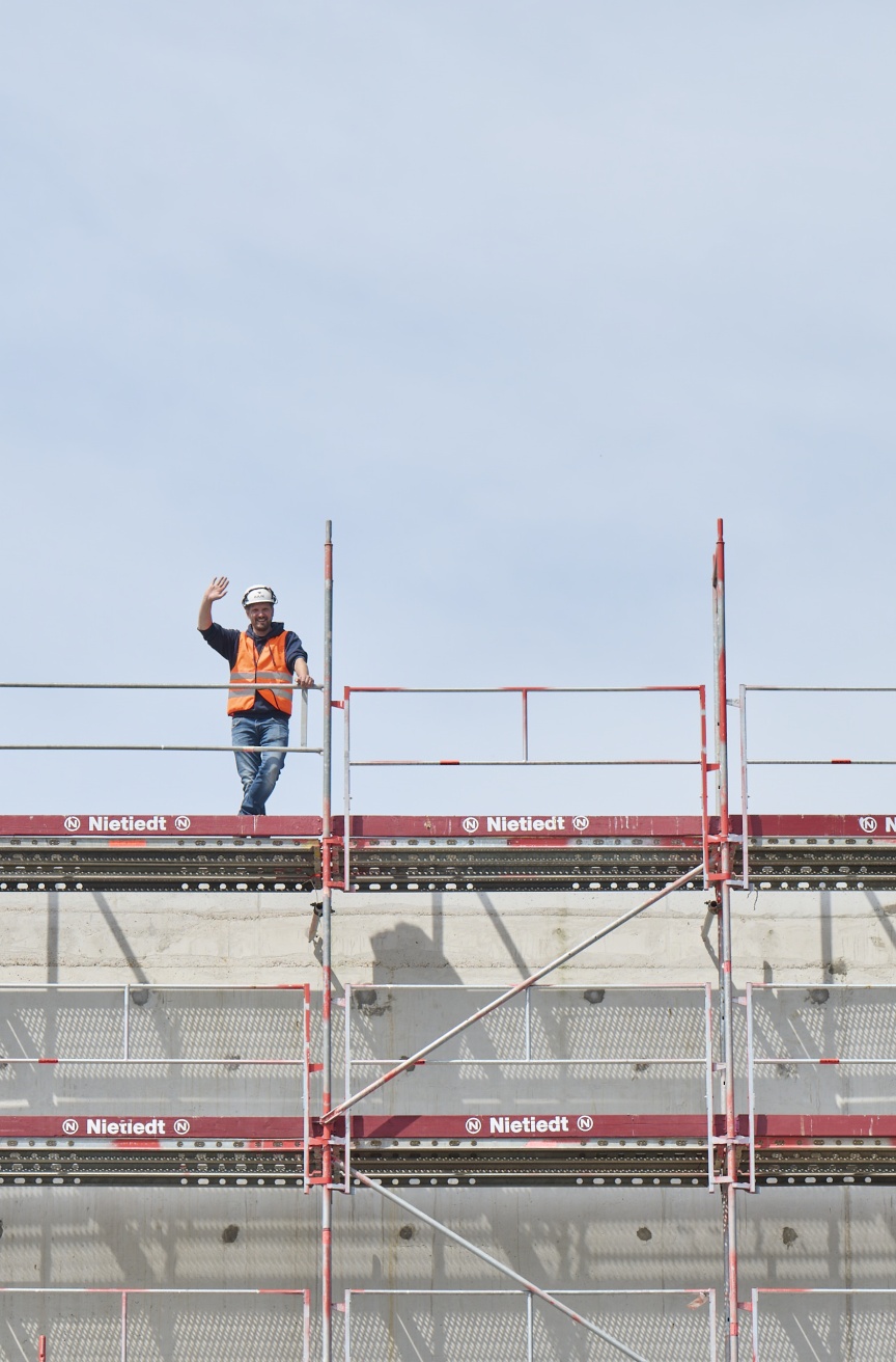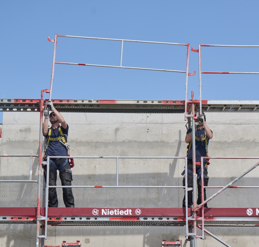 “Safety is a top priority in our company. We don’t just pay lip service – we monitor it very strictly on our construction sites. That’s why collaborating in the development of the I-Guardrail was a matter of course for us in order to improve the safety of our employees”, says Tobias Hansjürgens, Managing Director of Nietiedt Gerüstbau GmbH, explaining the company’s philosophy. “Furthermore, we insist on the highest quality standards in our work, and when it comes to scaffolding, the market leader, Layher, is naturally on our supplier shortlist.”