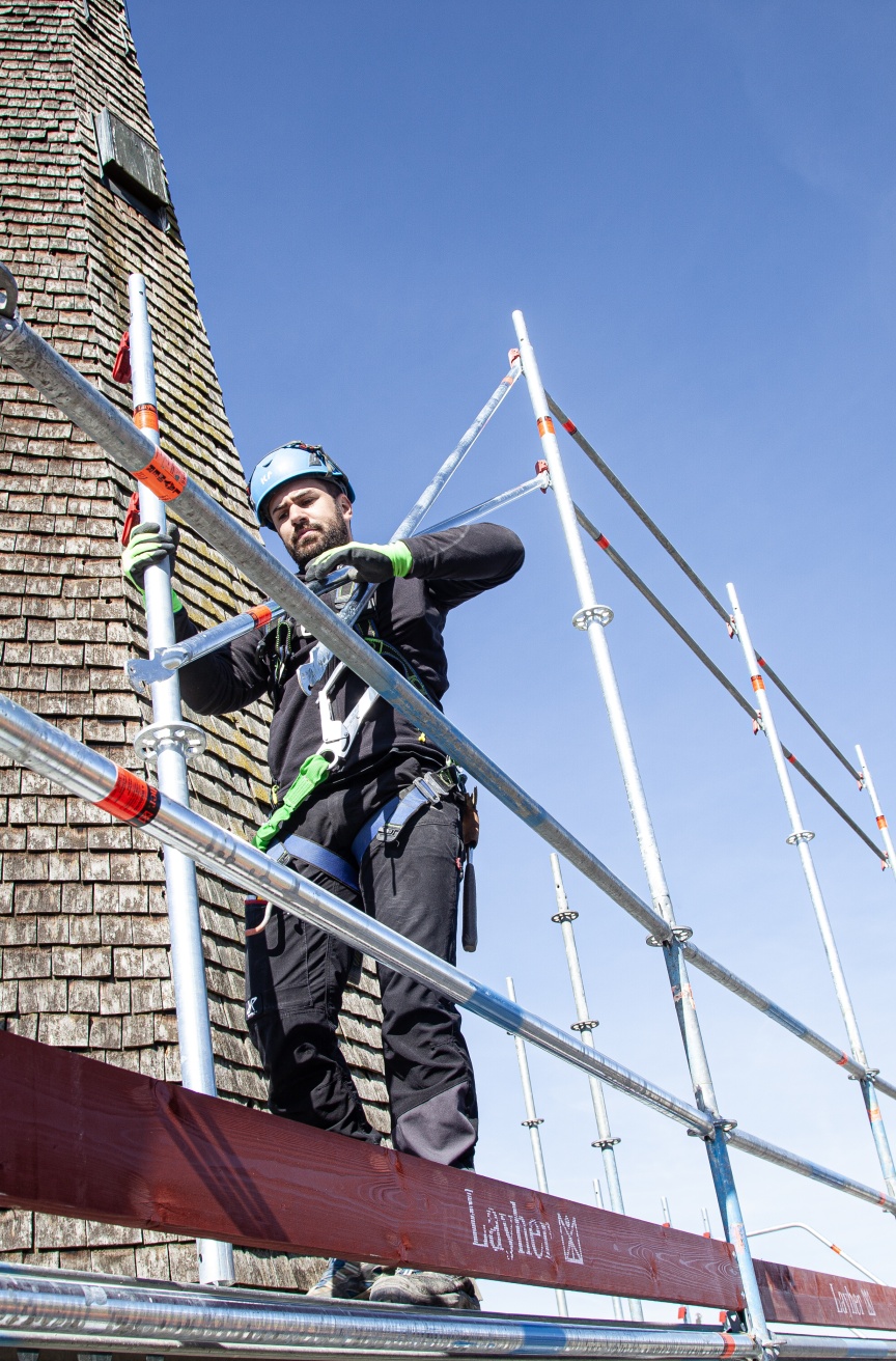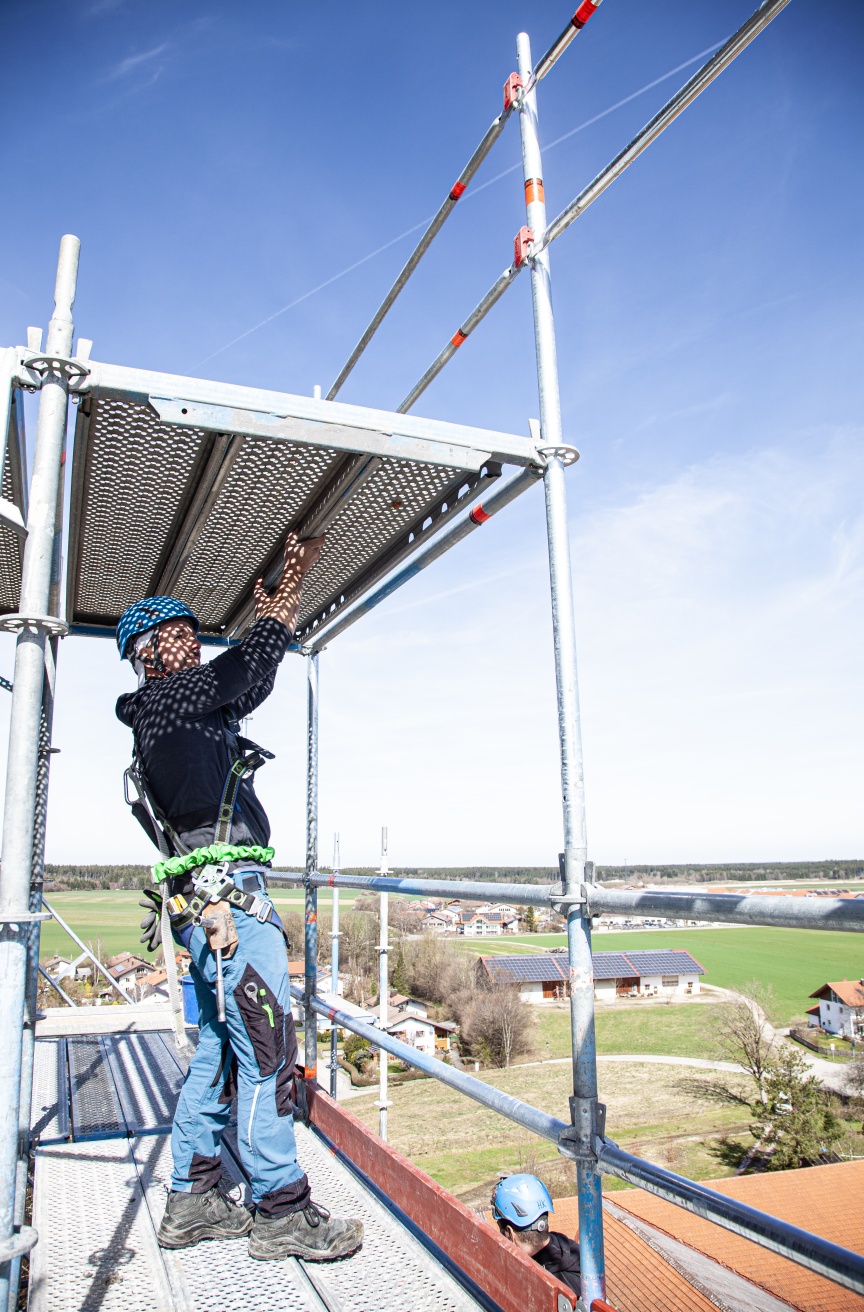 “As part of Allround Scaffolding and with its simple basic principle, the AGS System is not only very straightforward to assemble but also very efficient and maximally safe”, comments Adrian Seuß, the foreman in charge at Westermaier, who erected the scaffolding together with four colleagues in just over three weeks. “What’s more, the AGS standard has the same load-bearing properties as the Allround standard LW. And thanks to the integrated Allround rosette, we can connect standard Allround components and mix them with our existing material”, Franz Westermaier adds. “We see the AGS System as a smart investment in our Layher material pool and, as such, in the future.”