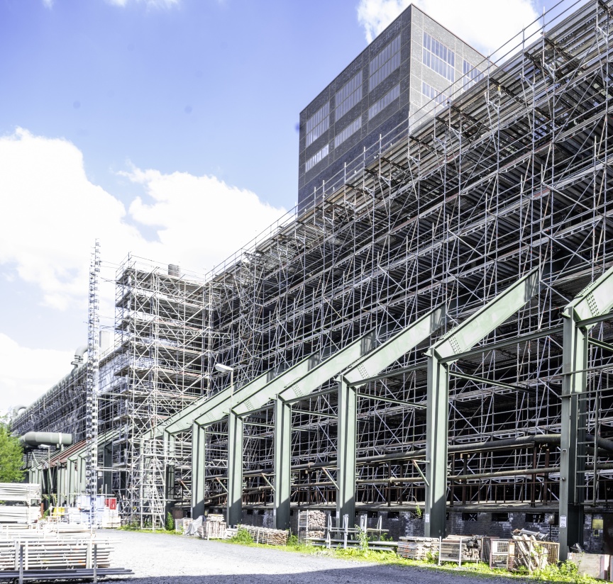 When Zollverein coal mine and coking plant both closed for good in the late eighties, German heavy industry – a pillar of Germany’s success as one of the world’s premier industrial powers during the post-war period, came to a standstill too. In the years from 1961 to 1993, Zollverein ranked as the largest and most modern coking plant in Europe, covering an area of 100 ha and producing up to 8,000 t of coke a day. Together with the adjacent Zollverein coal mine, one of the biggest and most productive black coal collieries anywhere in the world up until its closure in 1986, it became a UNESCO World Heritage Site in 2001 and is a centre for art and culture in the middle of the Ruhr Valley. In order to preserve this impressive industrial monument and make it accessible to visitors, the complex facility has been lavishly maintained section by section for many years now. Due to the very strict regulations governing the protection of historical monuments, everyone involved must take meticulous care not to damage or alter any of the historic building fabric – no easy task for Branch Manager Heiko Esch and Project Manager Rolf Bittner of XERVON, the provider of scaffolding services charged with scaffolding the quenching hall.