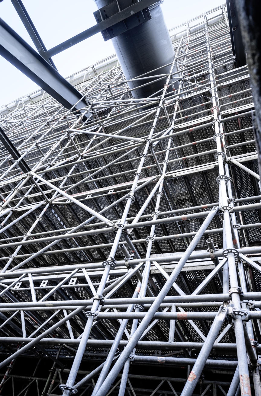 On the outside of the quenching hall, the specialists erected 22 m high and 3.53 m wide facade scaffolding totalling an awesome 21,900 m3 over a length of 282 m. The scaffold foundation on the sloping, tiled coke chute was a particular challenge. Additional 0.73 m wide support structures were therefore installed along the entire length to absorb any forces occurring. “We weren’t allowed to drill, we weren’t allowed to put too much stress on the tiles and we were obliged to wedge the entire scaffolding in a very elaborate way inside the building”, Bittner explains. “We laid tubes to the inside in order to dissipate the tensile forces in these areas and absorb them on the interior walls.” Layher Allround Scaffolding offers a wide range of solutions for tricky tasks such as this, even in the standard range, and literally enables ‘more possibilities’.