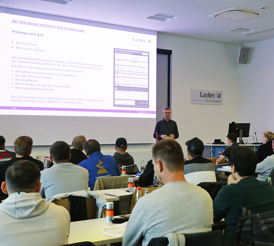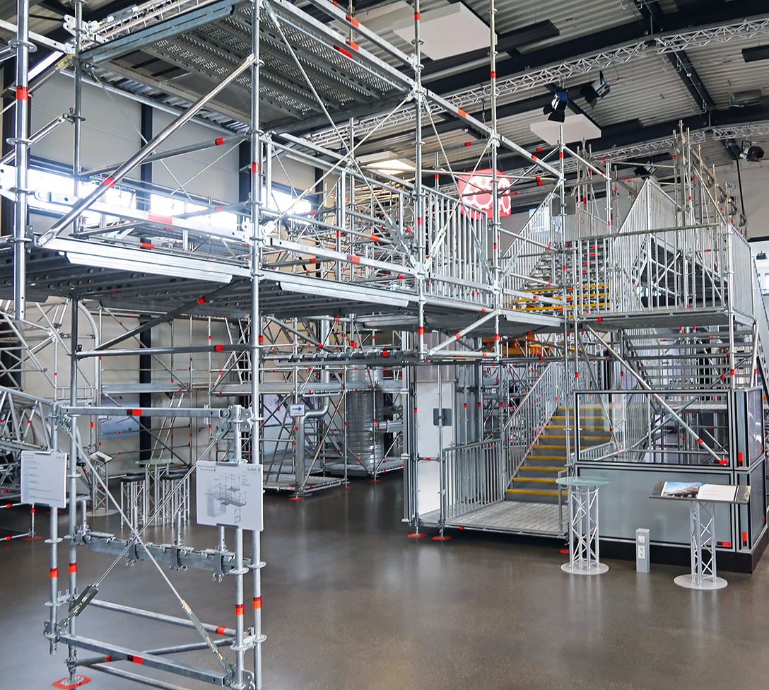 - The bright and spacious training hall, where you can experience and practice the efficiency and economy of Layher products in an optimum environment.