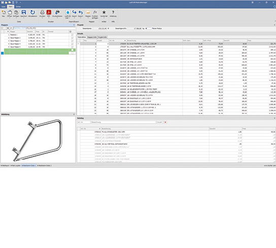 LayPLAN MATERIALMANAGER is part of both LayPLAN CLASSIC and LayPLAN CAD. With LayPLAN MATERIALMANAGER, material lists can be imported from the two modules at the touch of a button and can be individually edited – for example in order to perform a subdivision into different construction sections or adapt the logistics optimally to the construction workflows.