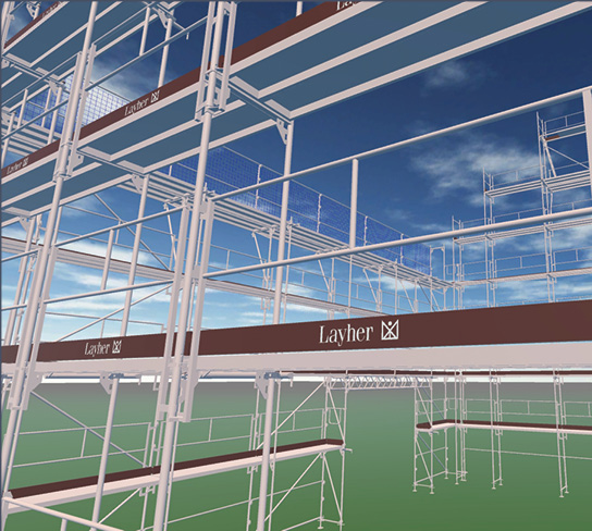 - Automated planning of standardised scaffolding structures using SpeedyScaf, Allround Scaffolding and Layher weather protection roofs.