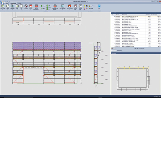 LayPLAN CLASSIC is a stand-alone planning programme which facilitates a start in digital planning by allowing automated planning of predefined scaffolding applications: whether they are for circular or facade scaffolding made from SpeedyScaf, for birdcage scaffolding and free-standing towers made from Allround Scaffolding, or for structures with temporary roofs. Once the key data has been entered, scaffolding erectors receive a scaffolding proposal that includes anchoring, bracing and side protection in just a few seconds. In parallel, a detailed material list is determined in real time.