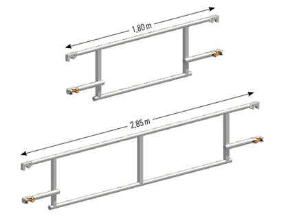 Safety structure P2 SAFETYPLUS with the new double guardrail implements a collective safety measure for rolling towers, in the form of system-integrated advancing side protection ensuring greater safety when moving up to the next level. Assembly and dismantling are only possible from the next level below that is already secured. That technically rules out any circumventing of the safety regulations, and full compliance with the current version of DIN EN 1004 and with the valid European health and safety legislation is assured. More safety for the user and hence for the client too.