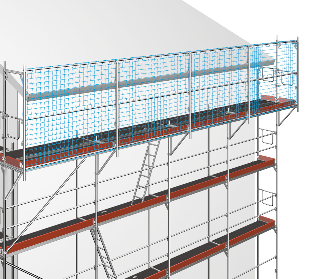 If protective scaffolding passes around a corner of a structure, the deck of the work scaffolding and the protective device must pass round this corner with its full width of 1.0 m