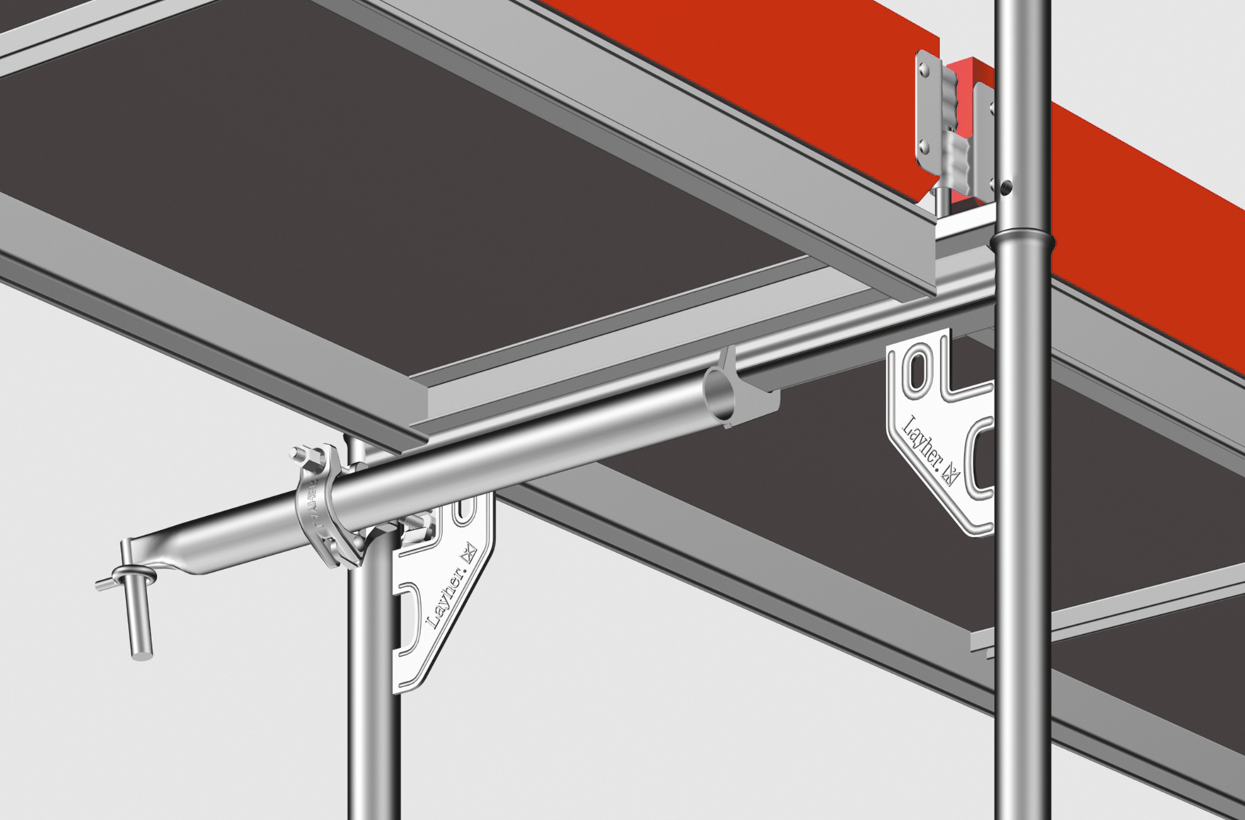 For outside and inside brackets, continuous anchoring directly on the corner plate of the Speedy assembly frame Lightweight using the top hole is possible and ensures a greater height clearance at the top scaffolding level.