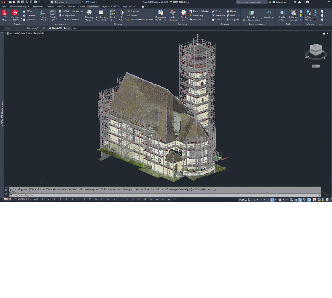 - Zur optimalen Nutzung der Daten des 3D-Laserscanners in LayPLAN CAD empfehlen wir das Plug-In Cloudworx für AutoCAD von Leica.